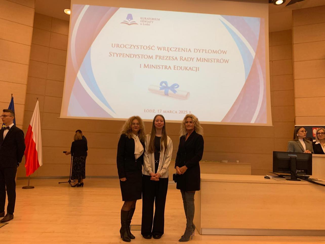 Wielkie gratulacje! Nasza uczennica – Kinga Cimcioch z kl. 3THK znalazła się w zaszczytnym gronie Stypendystów Prezesa Rady Ministrów. Uroczystość wręczenia dyplomów miała miejsce 17 marca 2025 r. w Wydziale Prawa i Administracji Uniwersytetu Łódzkiego.