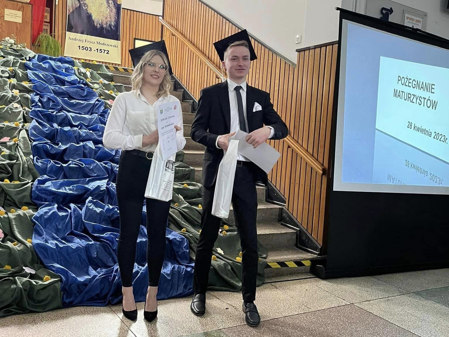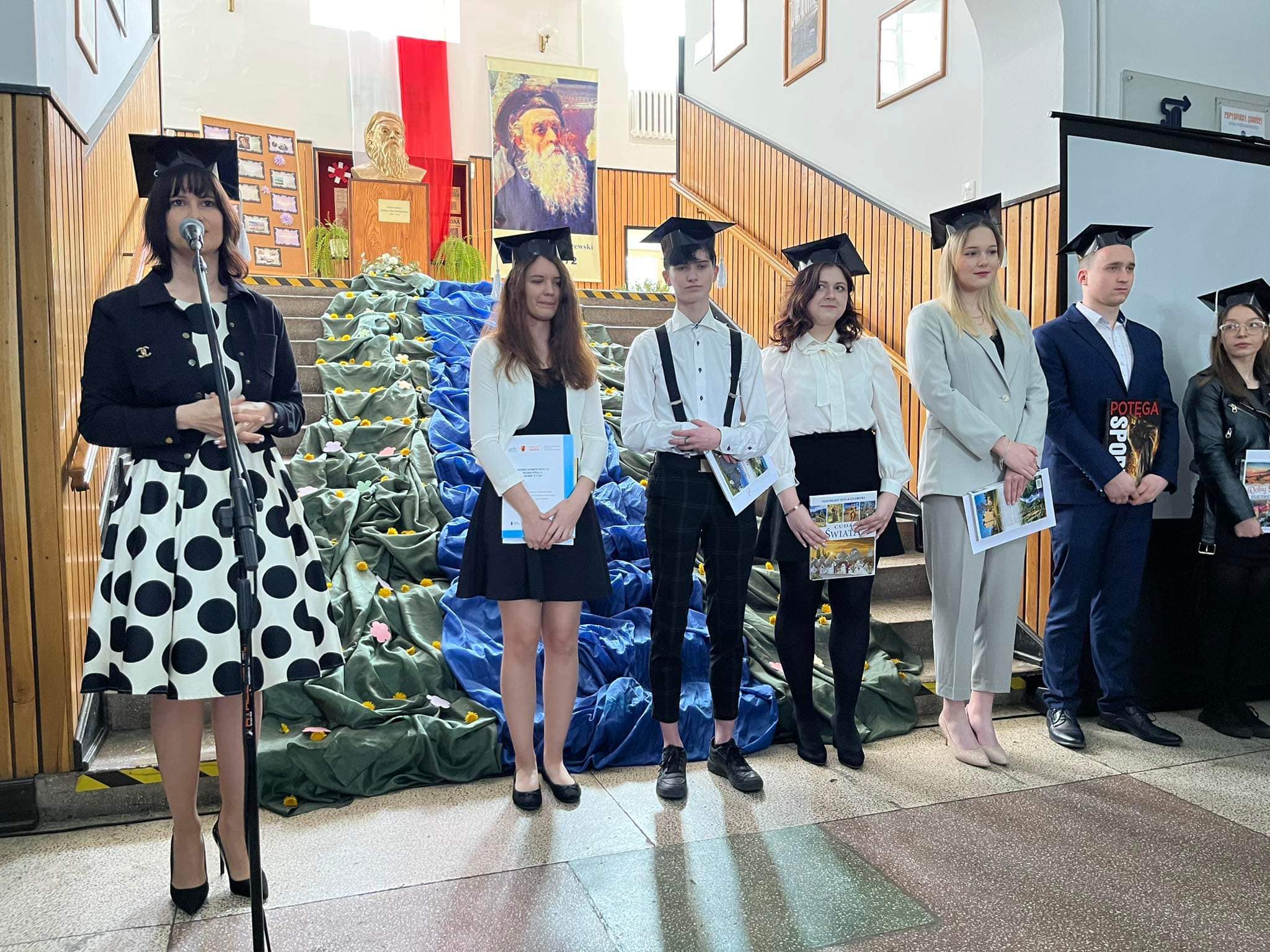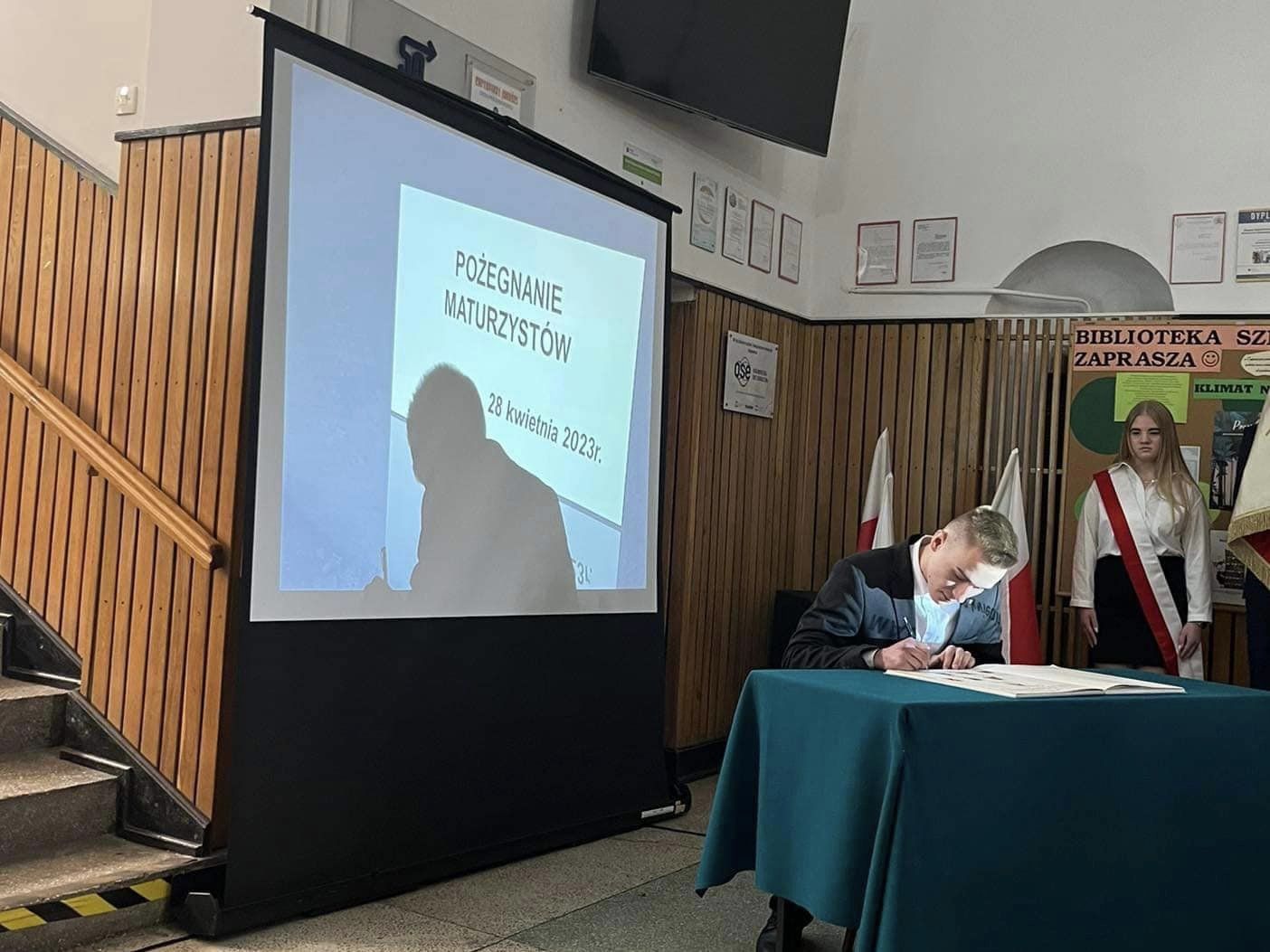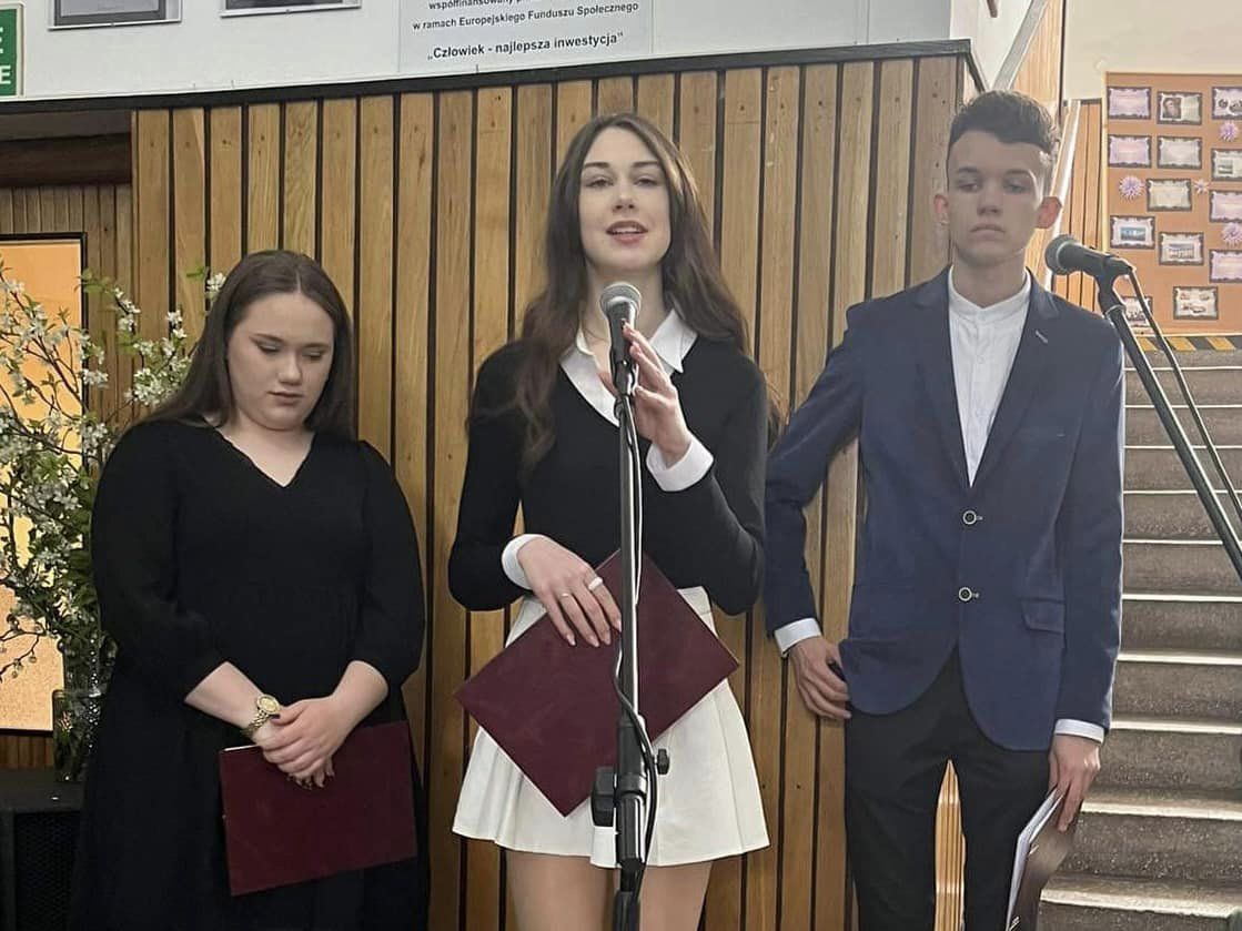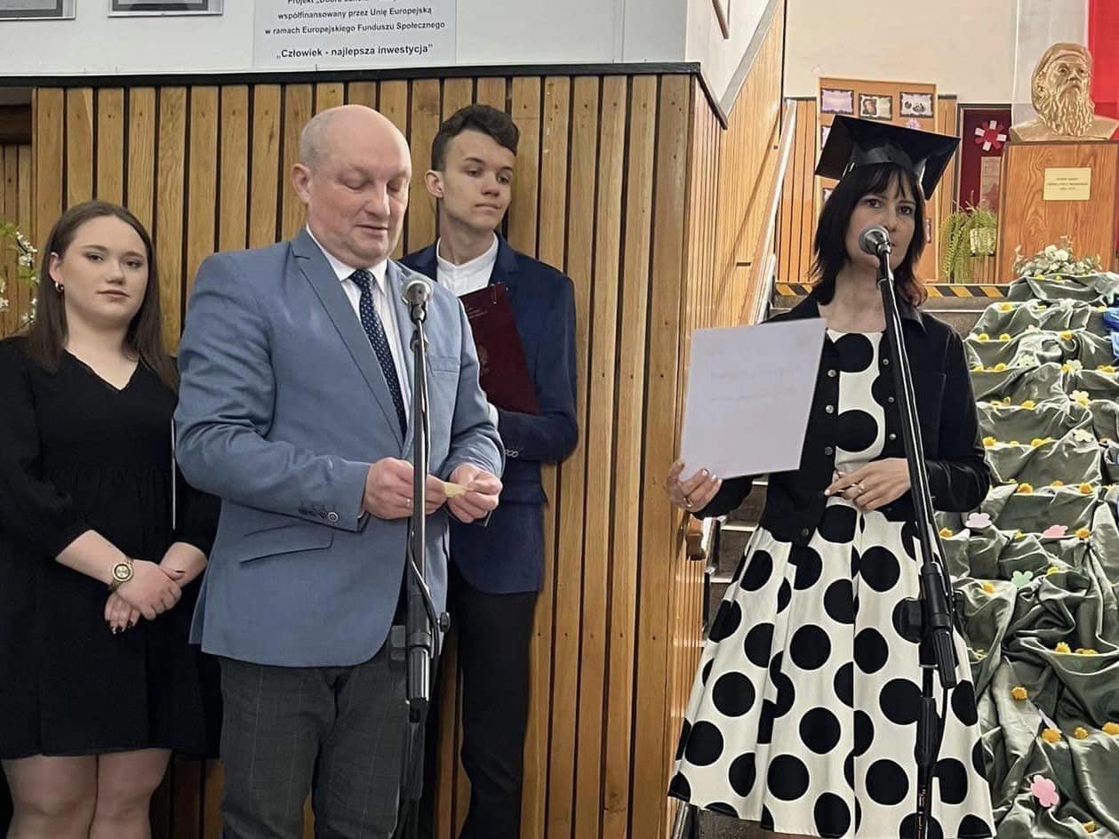 W dniu 28 kwietnia 2023 r. zabrzmiał po raz ostatni szkolny dzwonek dla tegorocznych absolwentów. Uroczystość rozpoczęła Pani Dyrektor Szkoły Dagmara Razik, która w swym wystąpieniu zwróciła się do abiturientów, dziękując im za cztery lata spędzone w szkole oraz życząc im powodzenia w dorosłym życiu. Po wzruszających słowach Pani Dyrektor przyszedł czas na uhonorowanie wyróżniających się uczniów. Zgodnie z tradycją szkoły, absolwenci, którzy z całego cyklu nauki uzyskali średnią ocen nie mniejszą niż 4,50, dokonali uroczystego wpisu do Złotej Księgi. W tym roku w grupie wyróżnionych znaleźli się: Gabriela Masiarek, Viktoria Dzbańska, Agata Dziubałtowska, Julia Hawryluk, Bartosz Matiaszewski, Julia Szewczyk, Adrian Gwiazdowicz, Wiktoria Cioroń oraz Przemysław Świątek.